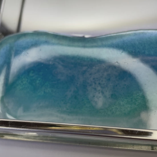 Materiales: Bandeja de metal y cristal con ola en resina.