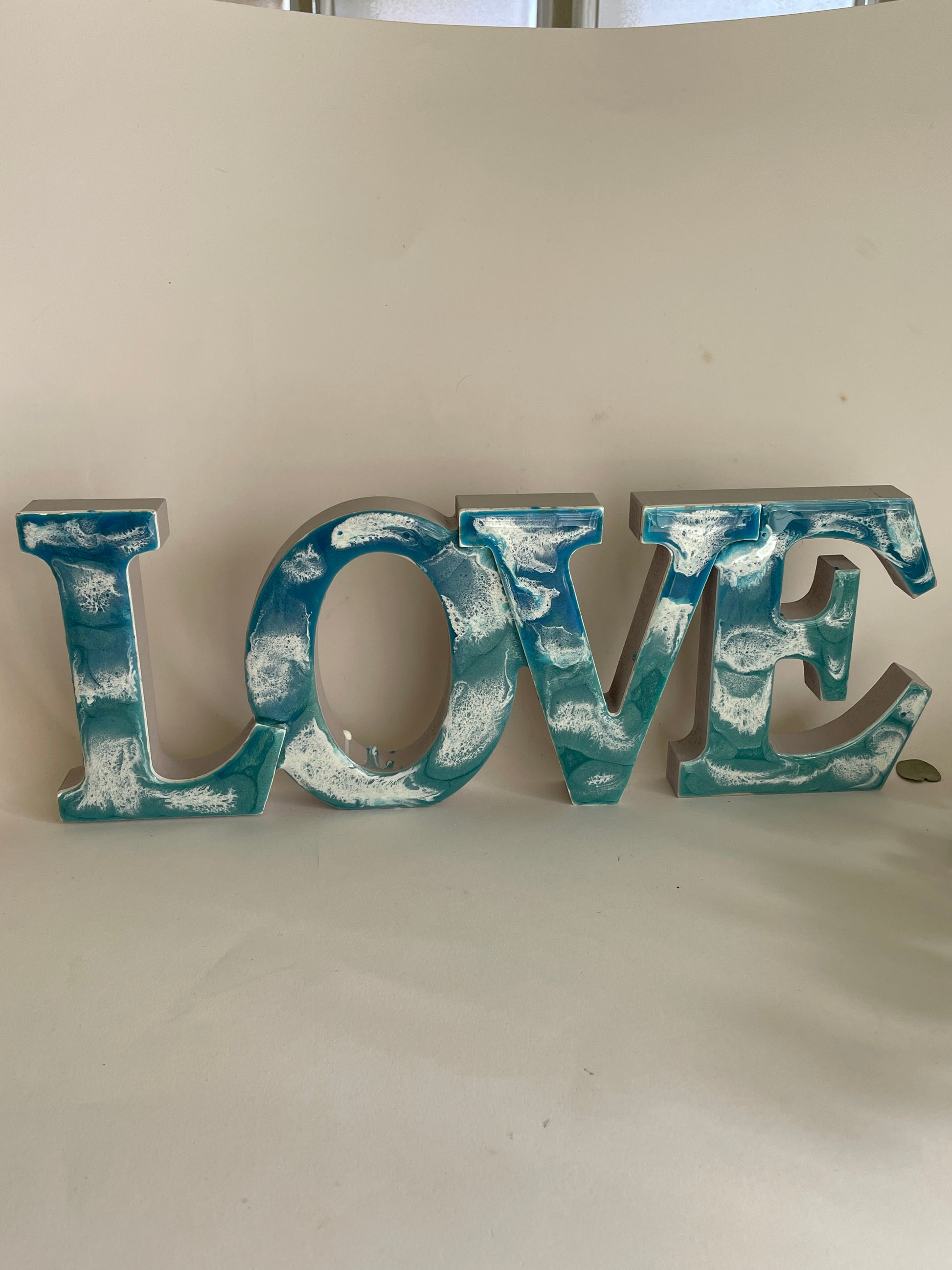 Cartel Love de madera con resina.