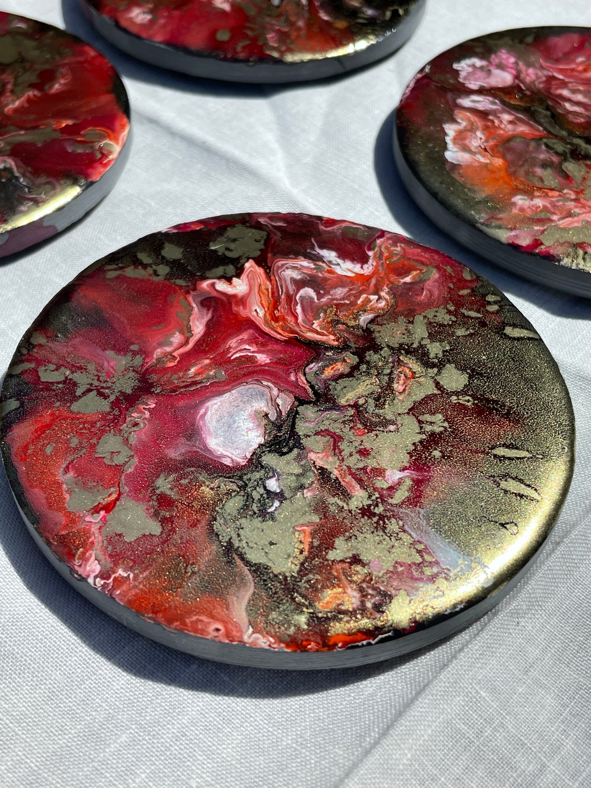 Posavasos redondos de pizarra y resina.
