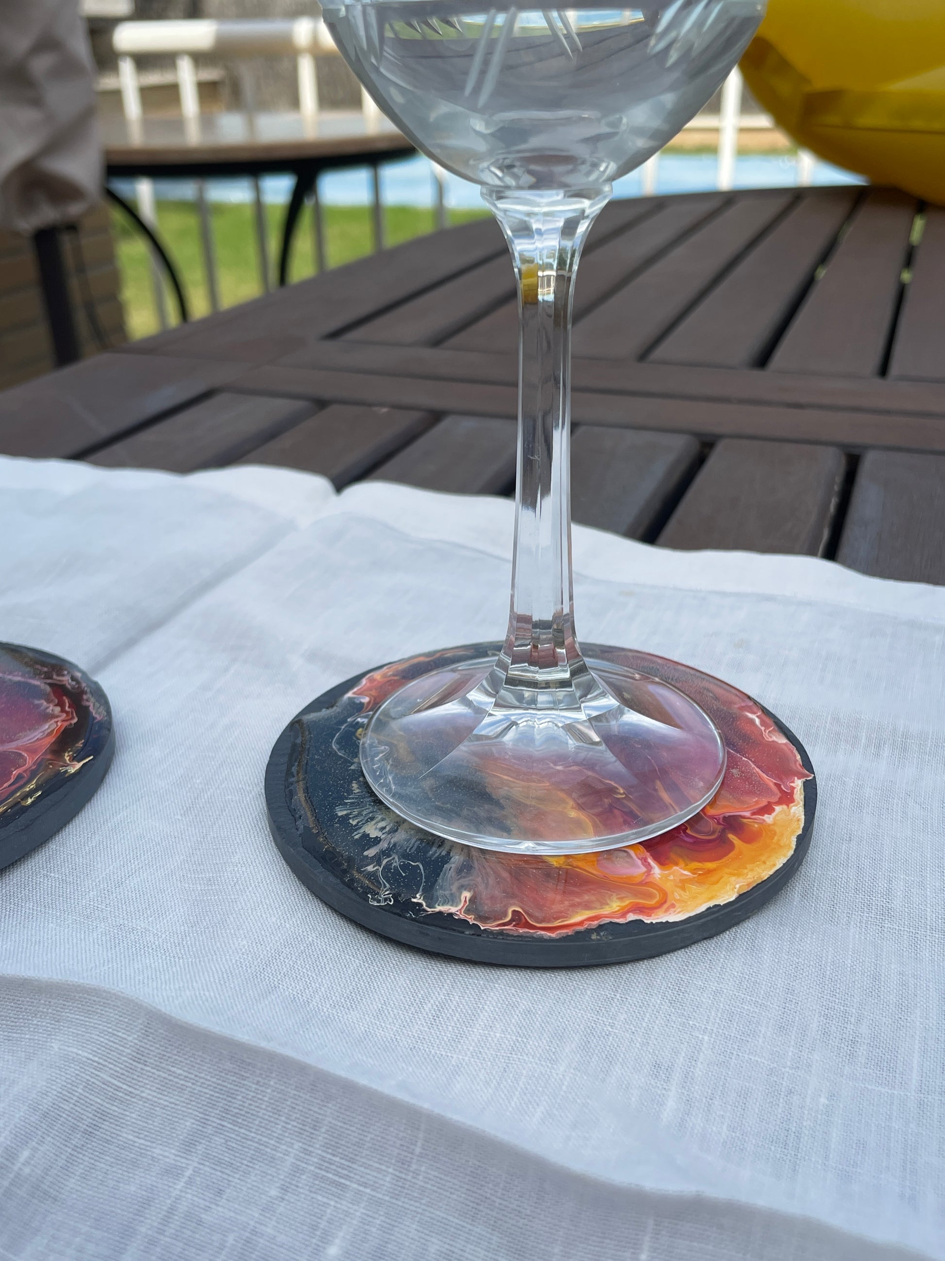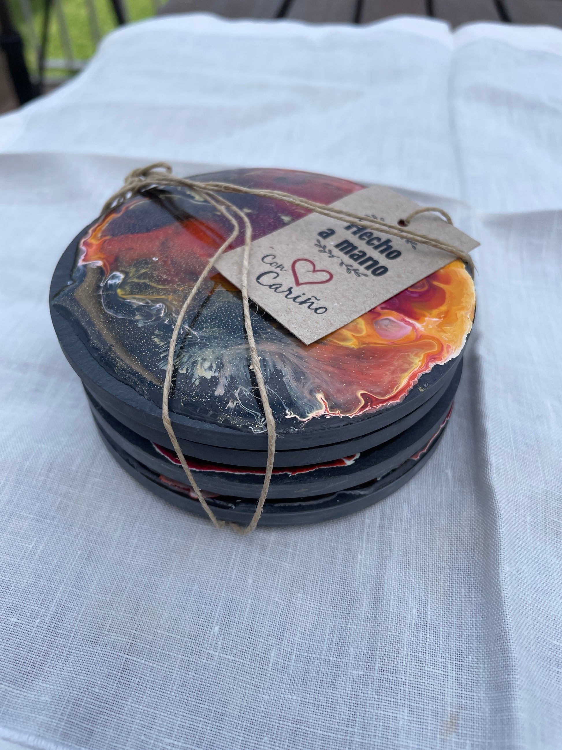 Posavasos redondos de pizarra y resina.